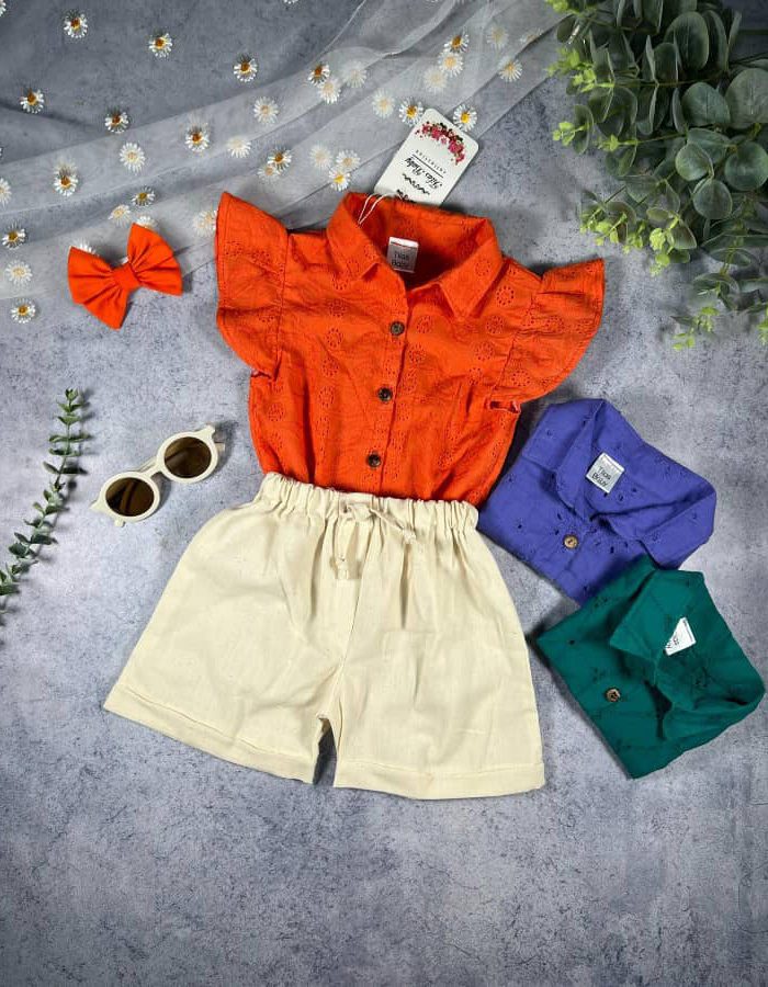 شلوارک لنتی کتان نارنجی تابستانه کد۷۹۷