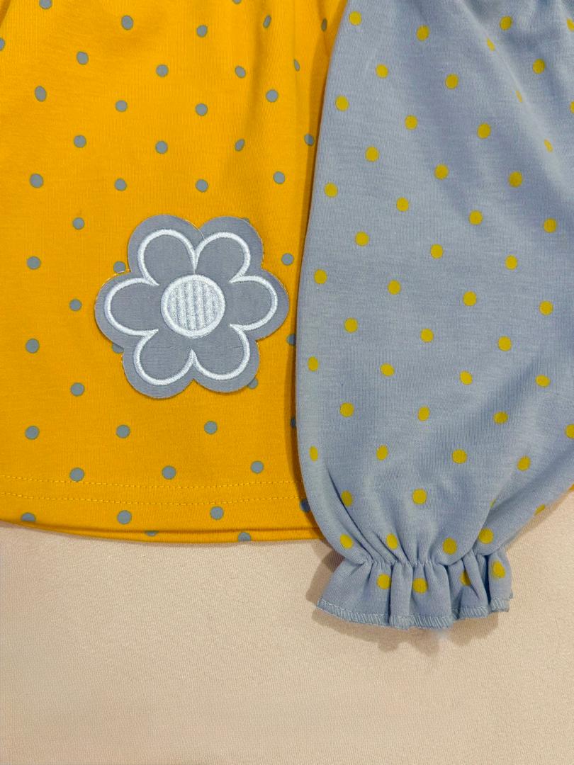 کد ۲۱۲۴ بلوز شلوارک خالخالی گل طرح آفتاب