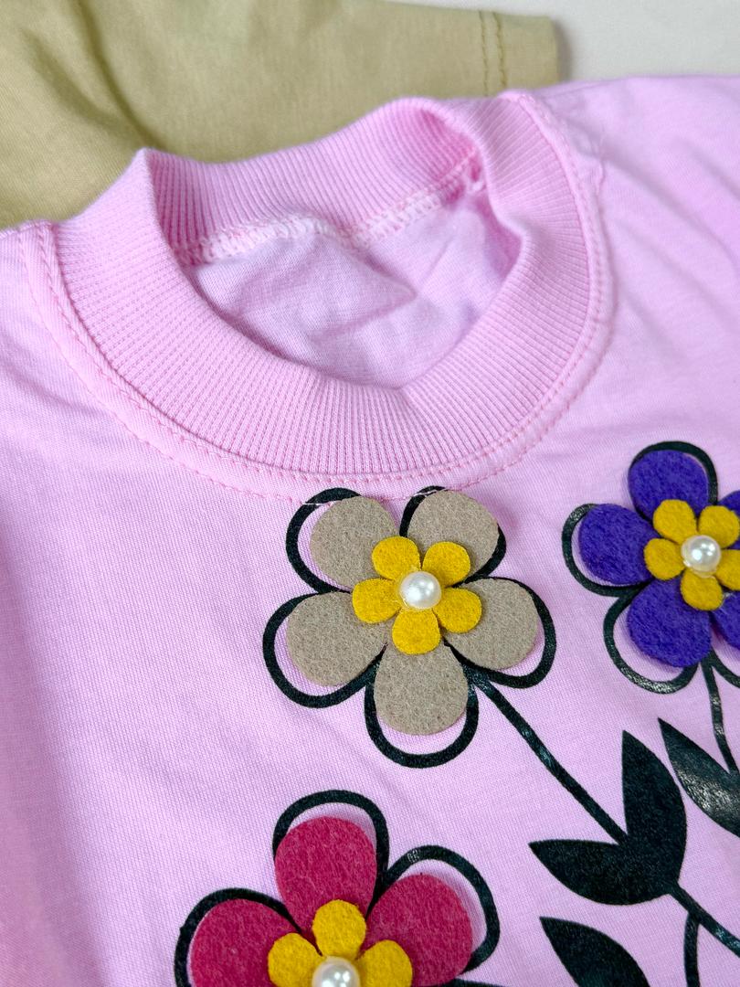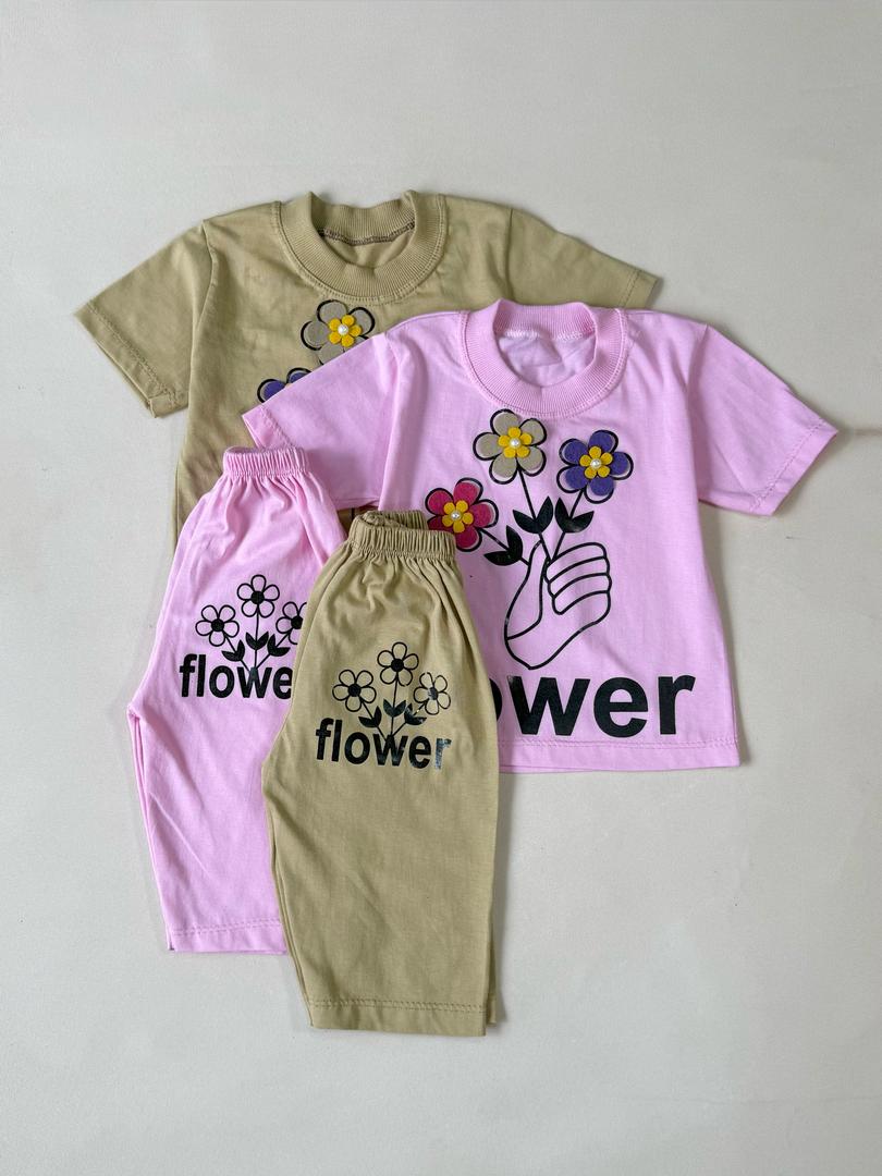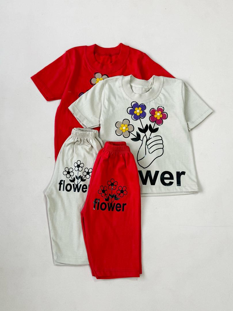 کد ۲۱۵۲ تیشرت شلوارک گل برجسته طرح میکا