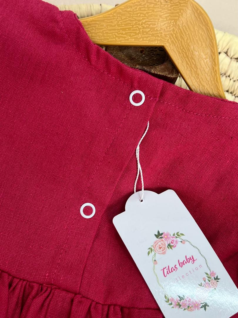 پیراهن لینن سرخابی ای گلدوزی طرح بهدخت