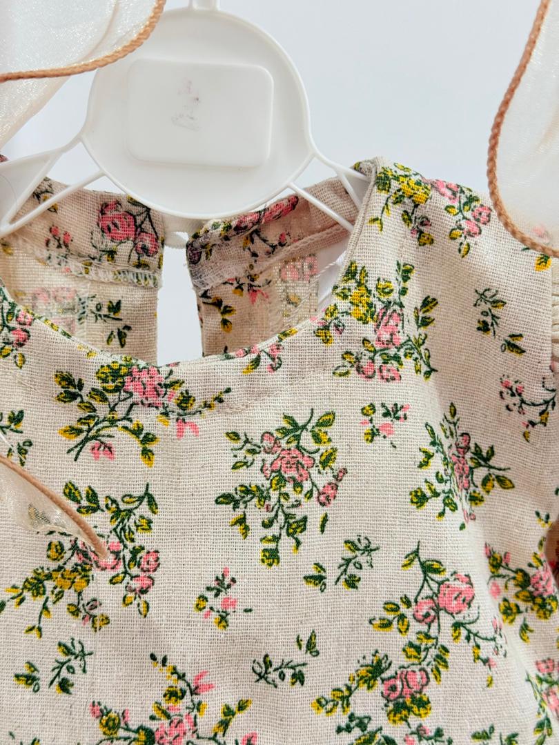 پیراهن سرشانه والان دار طرح گل در چمن