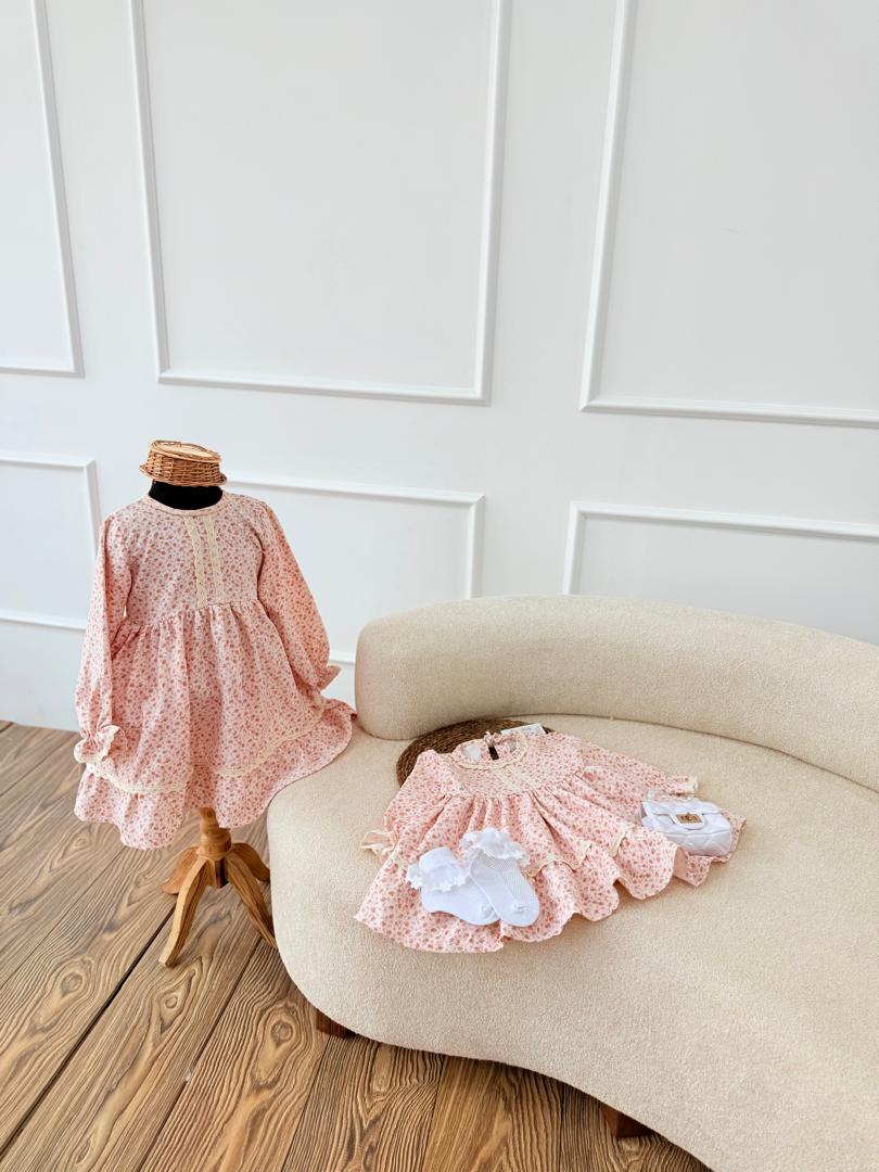 پیراهن زیبا و پاییزه جنس مازراتی درجه یک رنگ صورتی ملیح