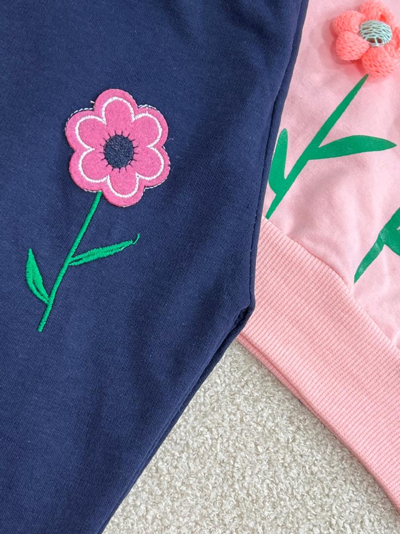 کد ۲۴۹۹ بلوز شلوار صورتی گل برجسته FLOWERS