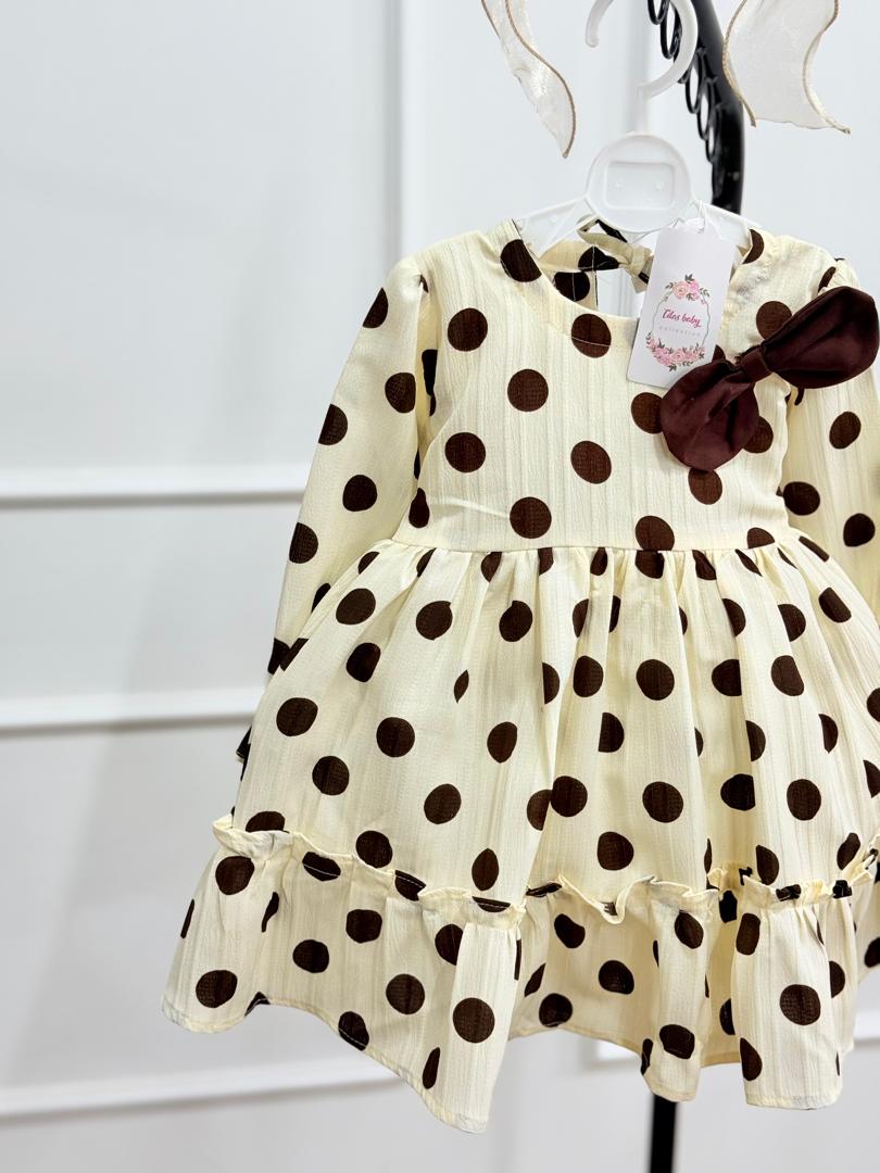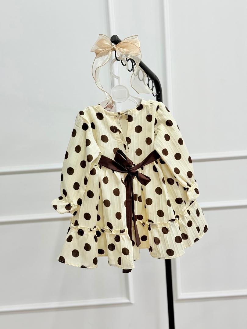 کد ۲۵۹۲ پیراهن طرح آیوا خالخالی کرم قهوه ای