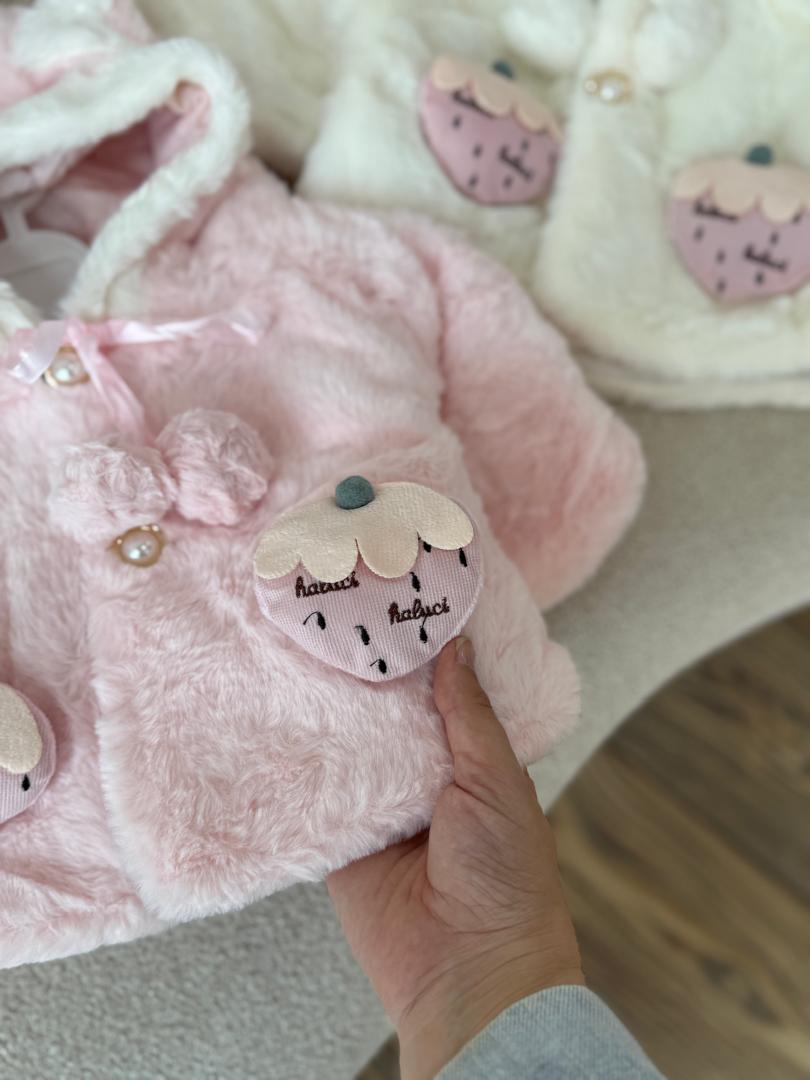 شنل استر دار وکلاه دار وارداتی طرح توتفرنگی