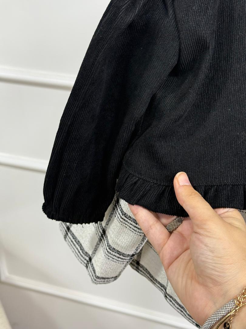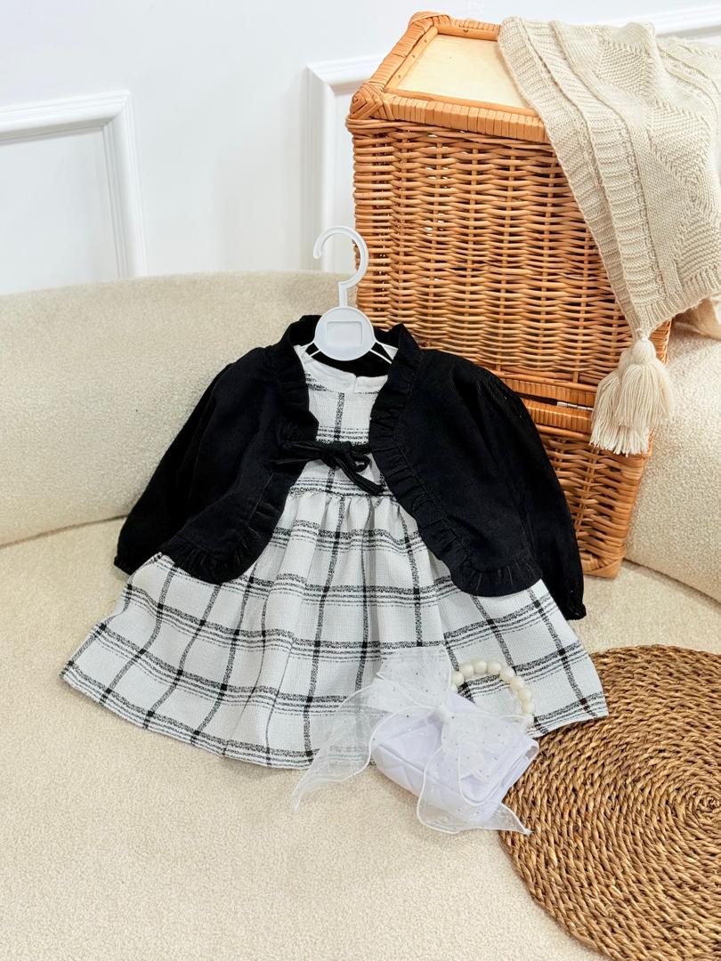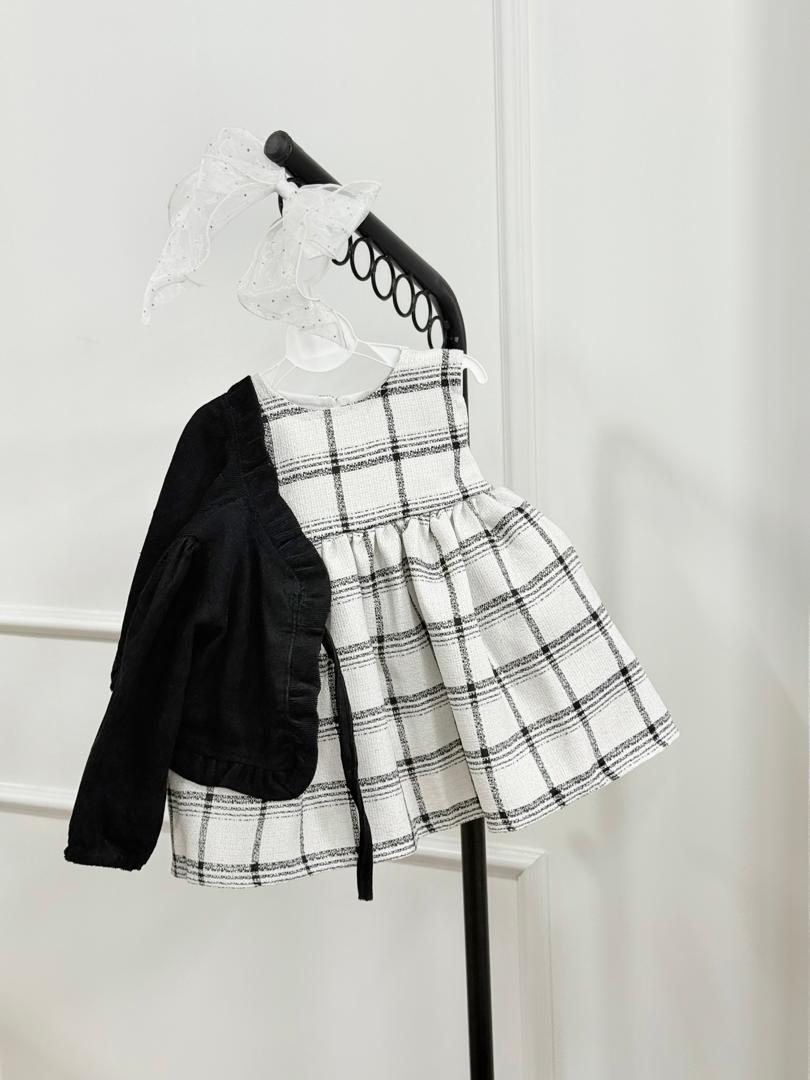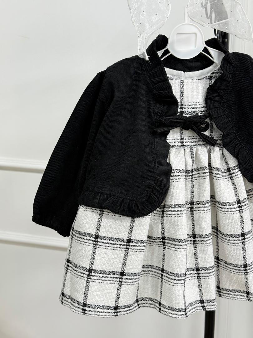 ست دوتیکه سارافن چهارخونه و کت مشکی