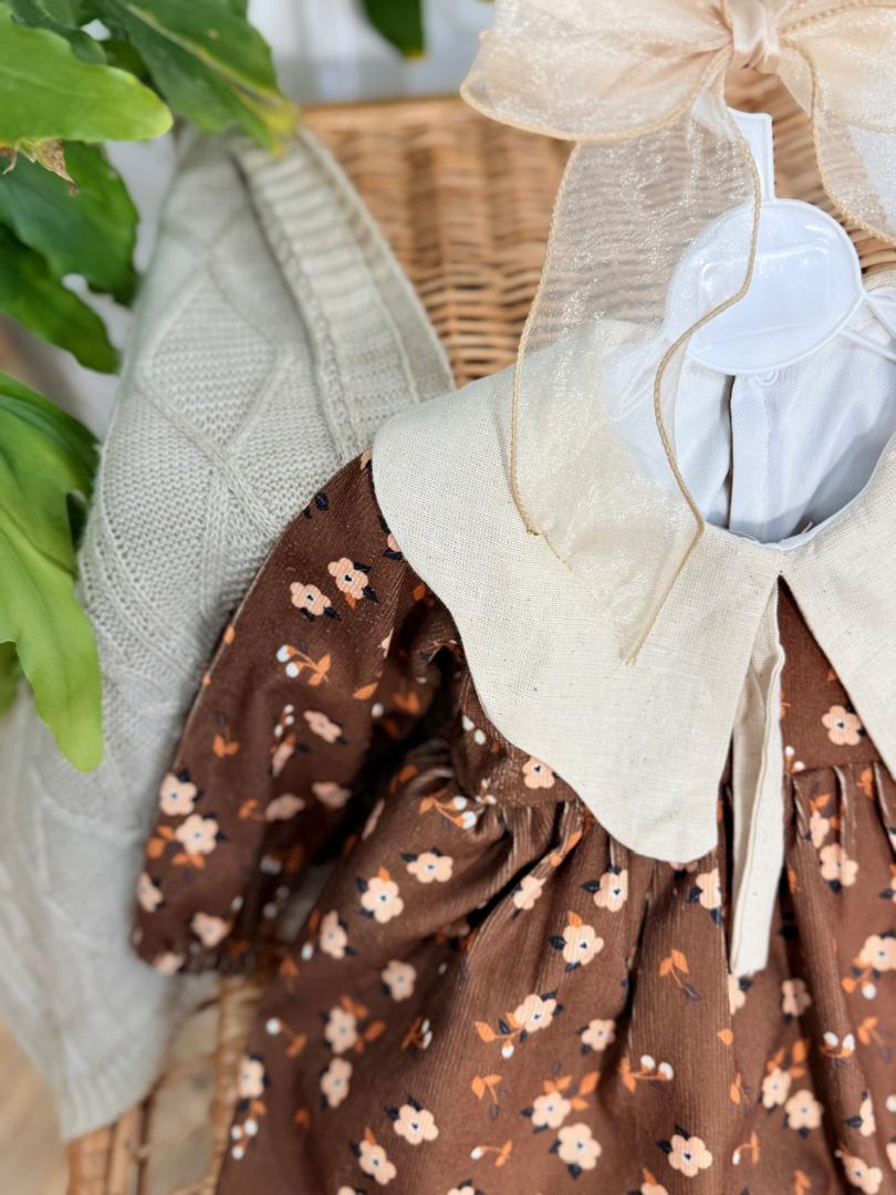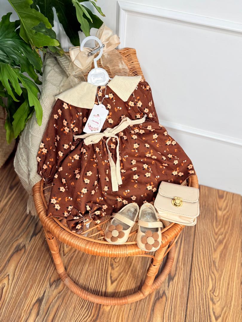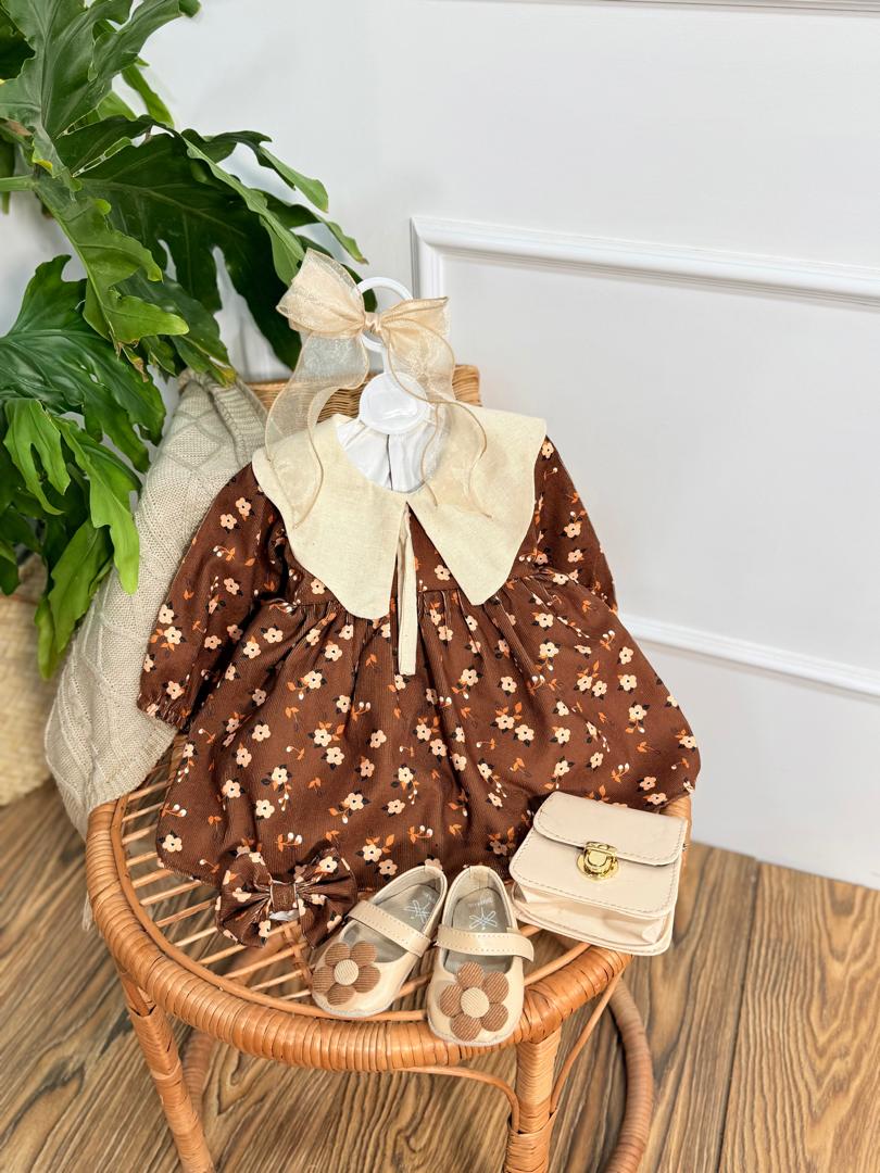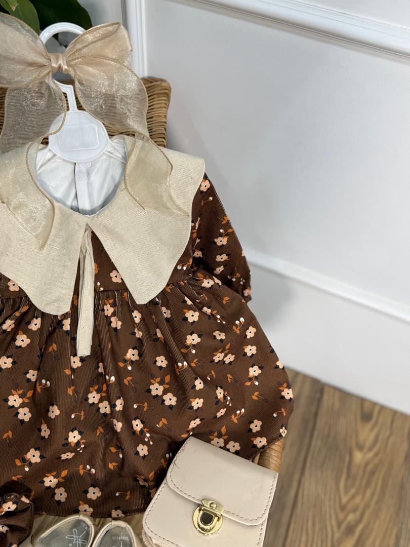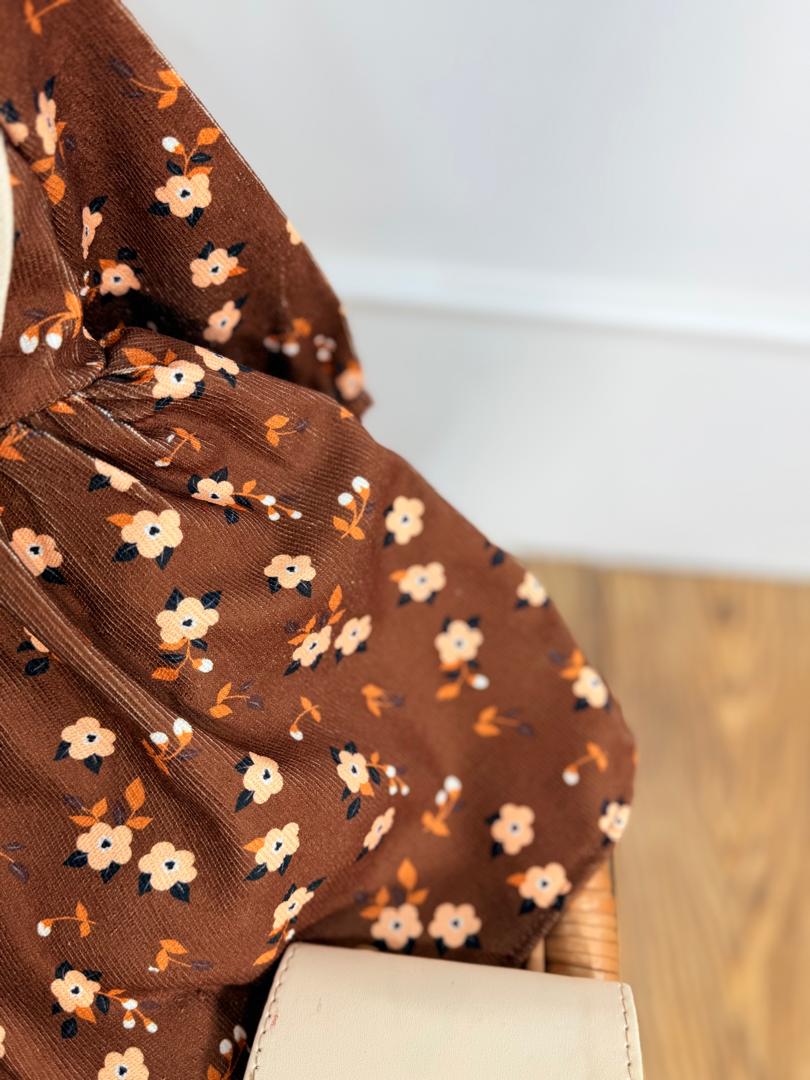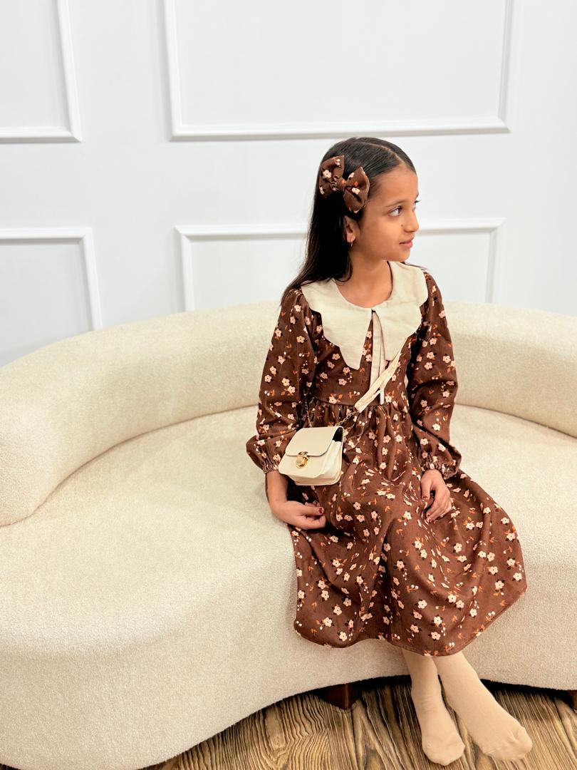 پیراهن مخملی کبریتی گل ریز قهوه ای