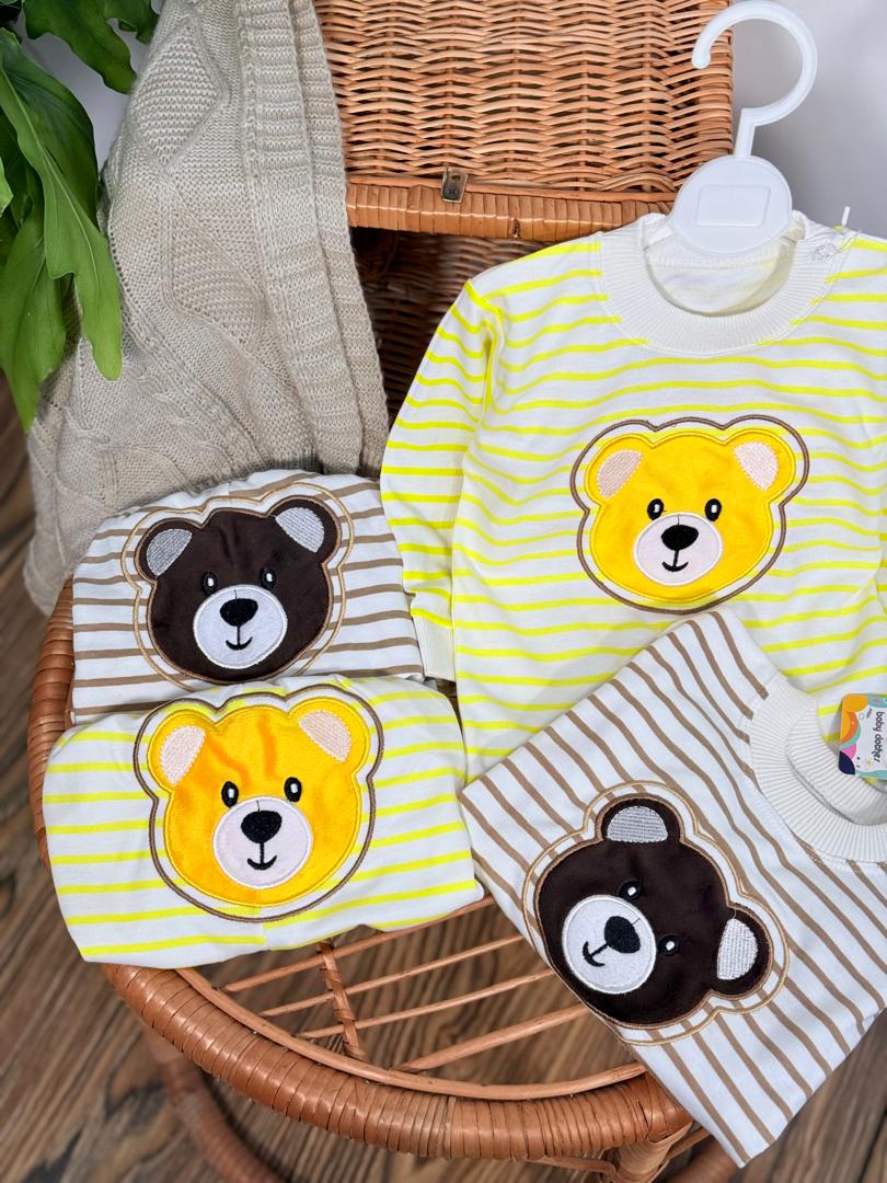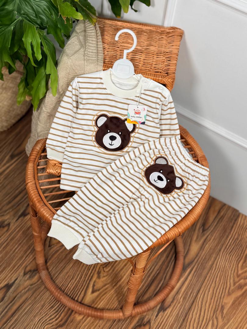 کد ۲۶۹۲ بلوز شلوار راه راه خرس گلدوزی