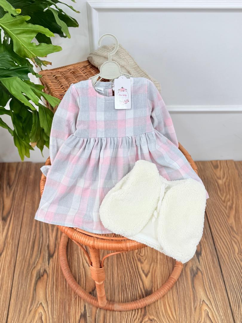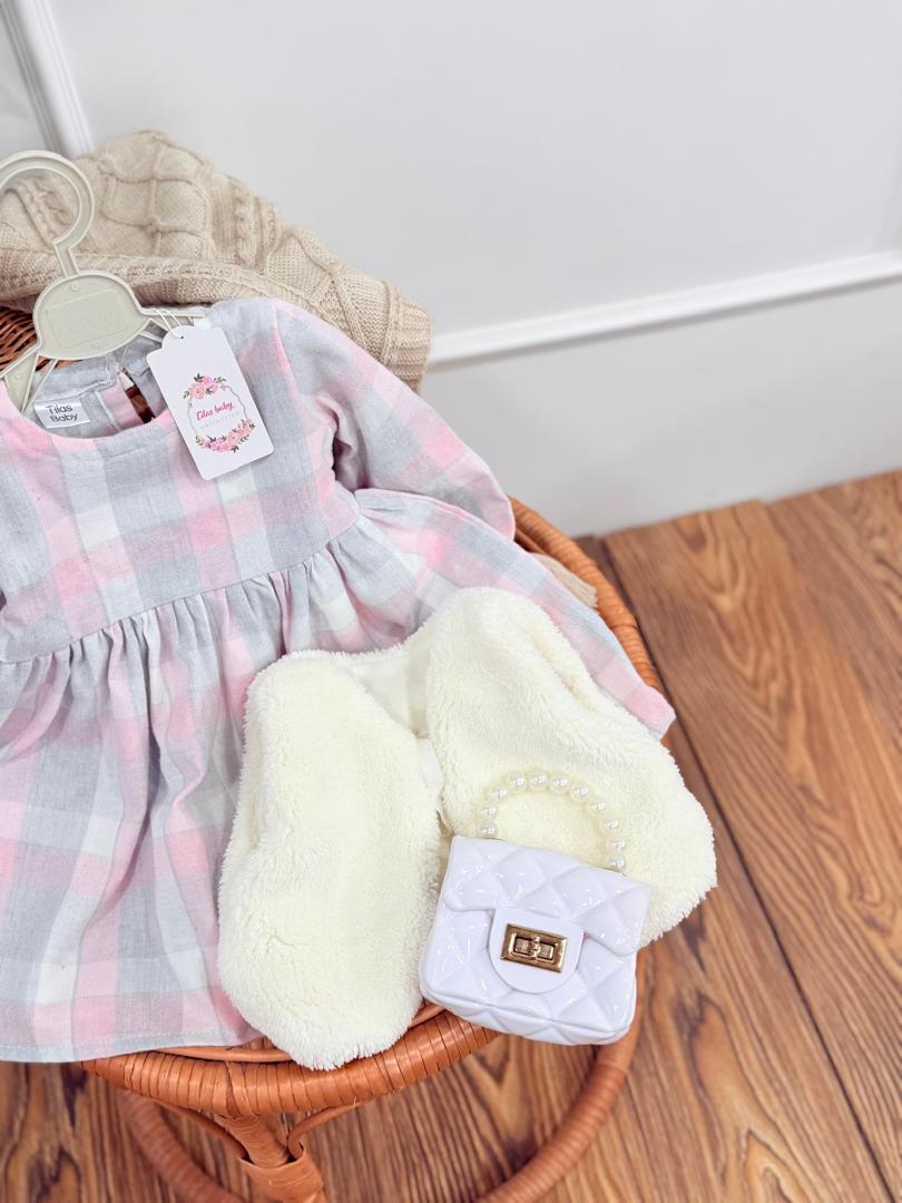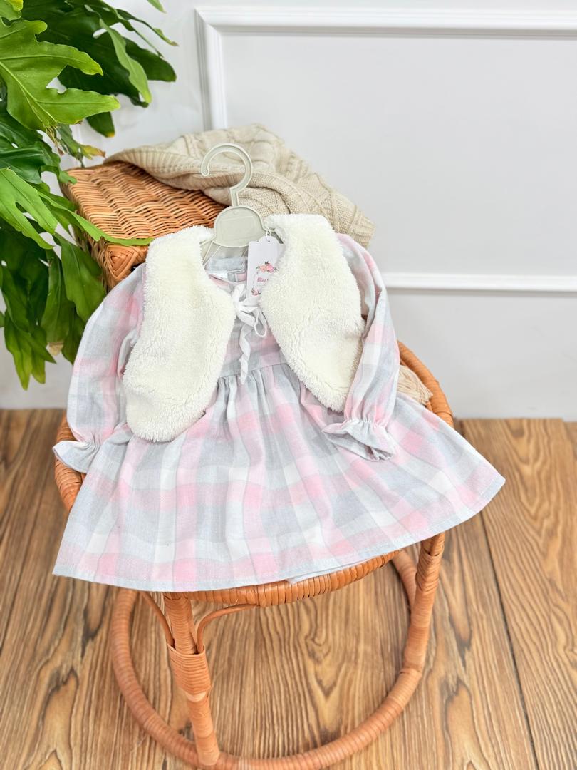 کد ۲۶۹۷ ست جلیقه خز + پیراهن پشمی سبک ۴ فصل طرح چهارخونه پینکی