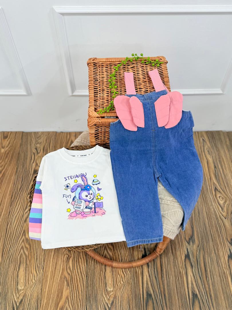 ست خارجی طرح دوتیکه شلوار لنتی بال دار