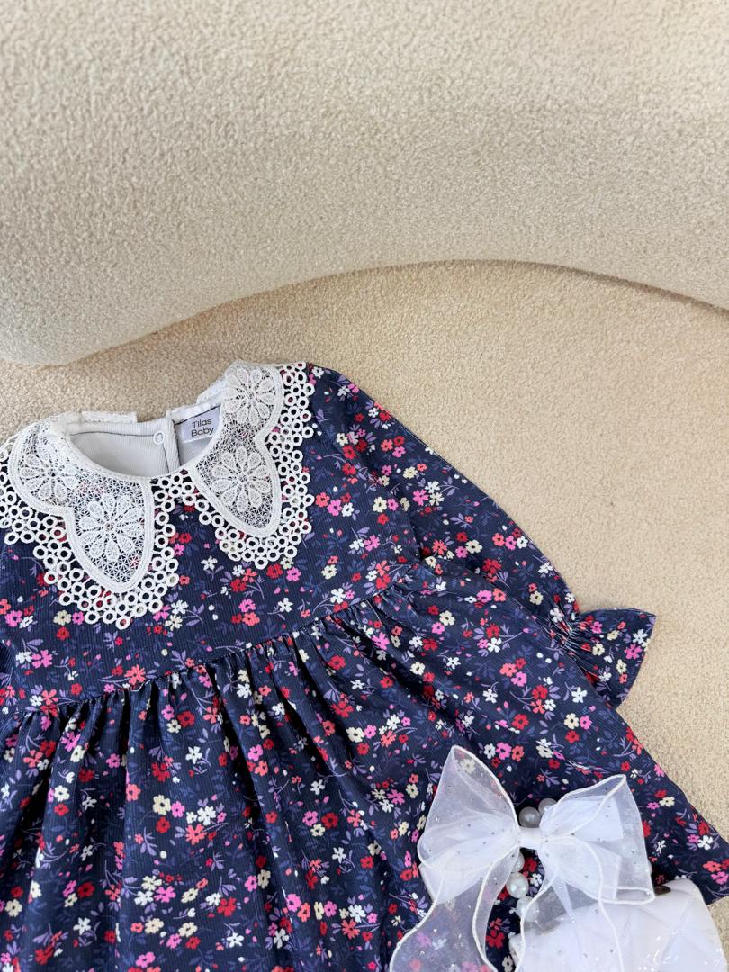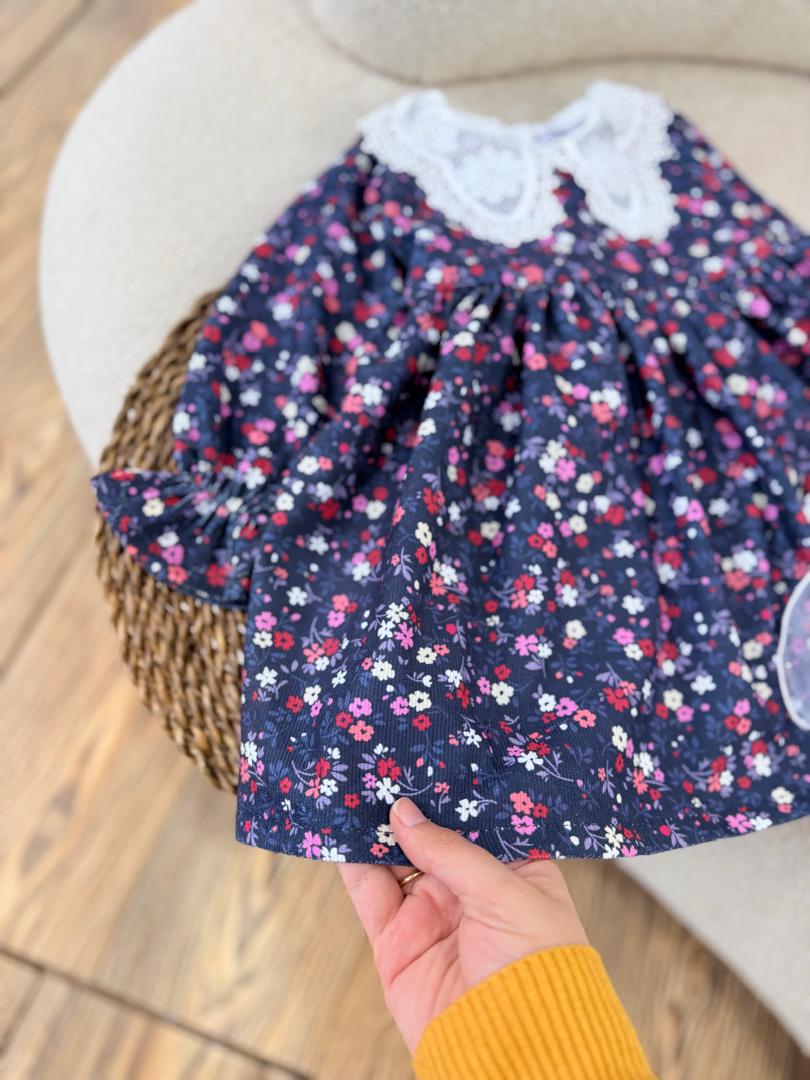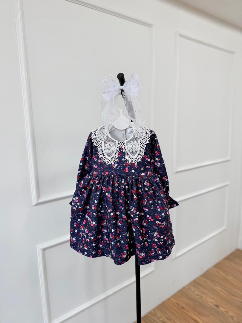 کد ۲۷۶۹ پیراهن کبریتی طرح دار گل ریز سرمه ای طرح پونه