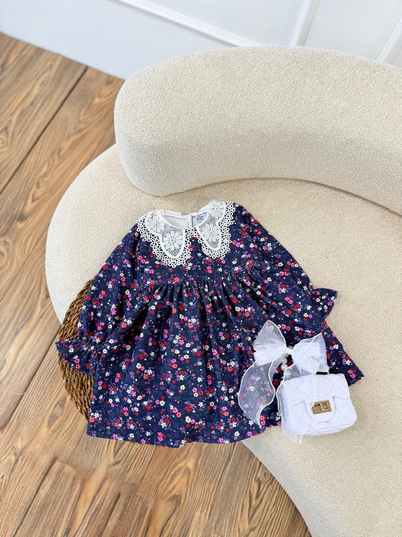 پیراهن مخملی کبریتی گل ریز سورمه ای ترند امسال