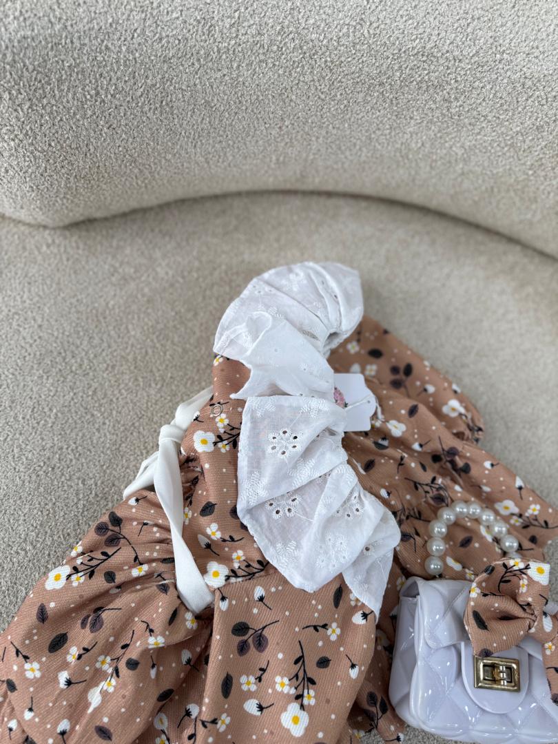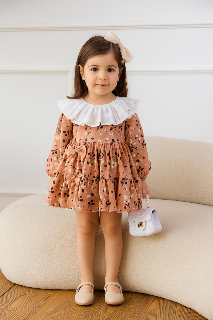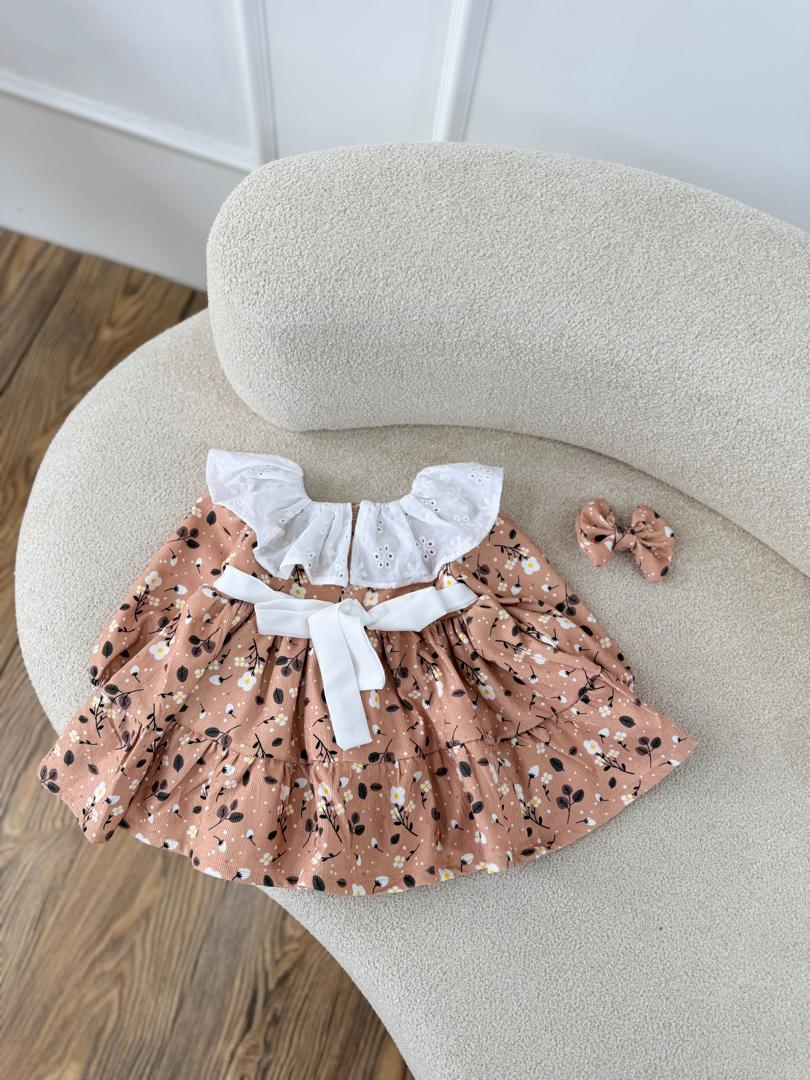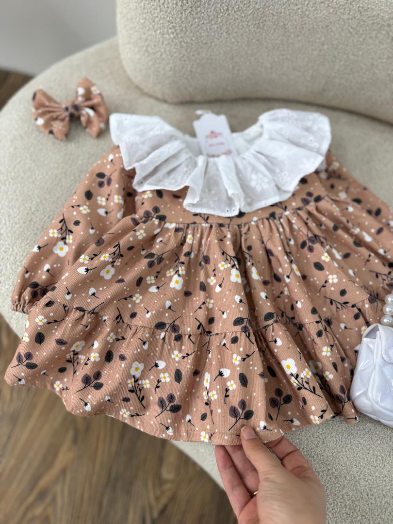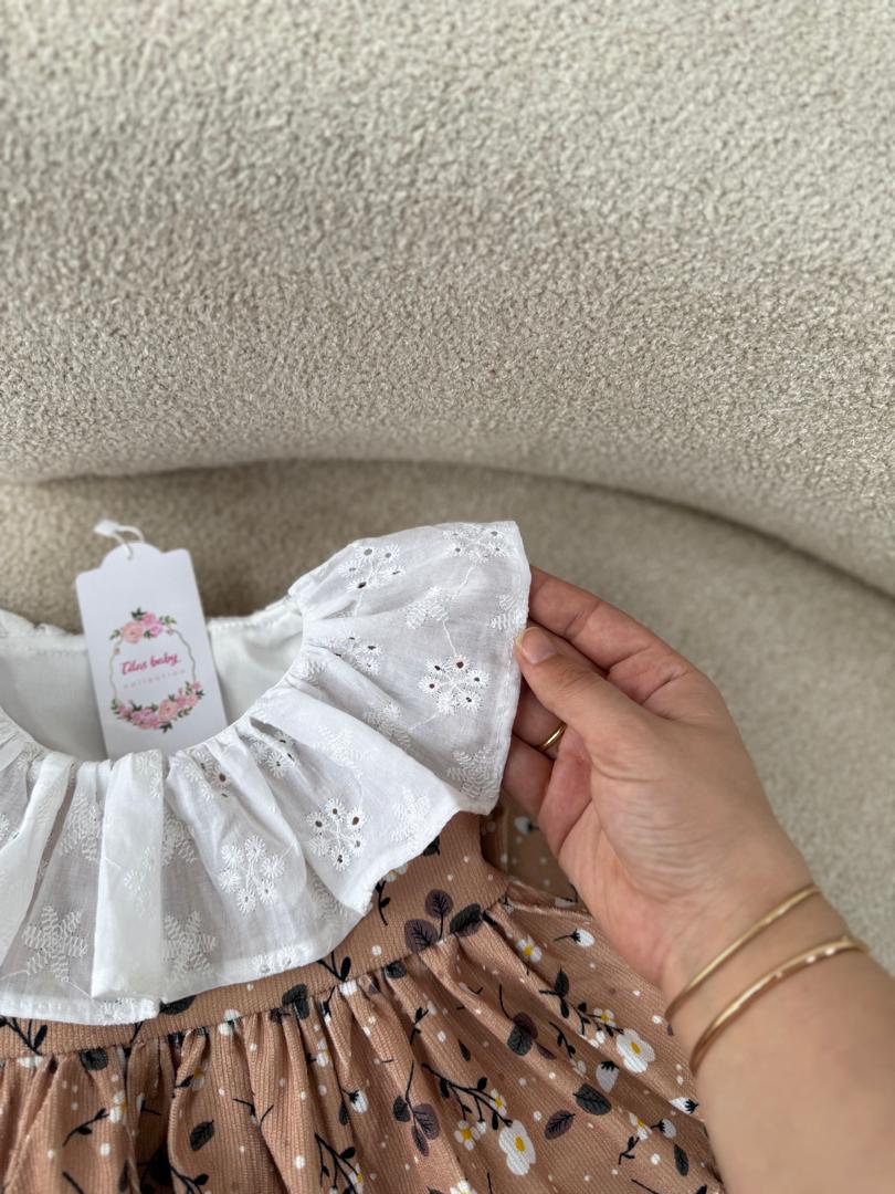 پیراهن مخمل کبریتی گل ریز کرم موکا ترند امسال