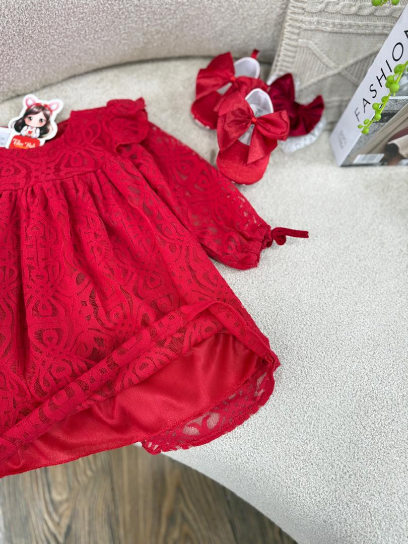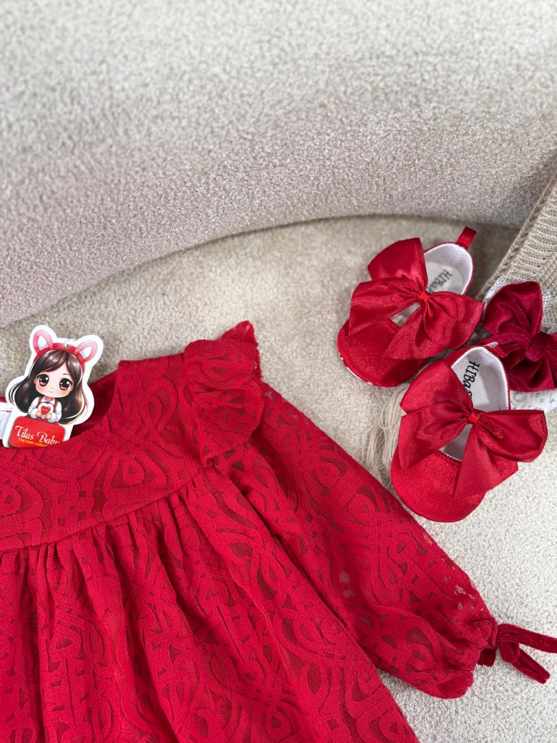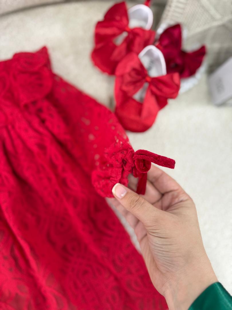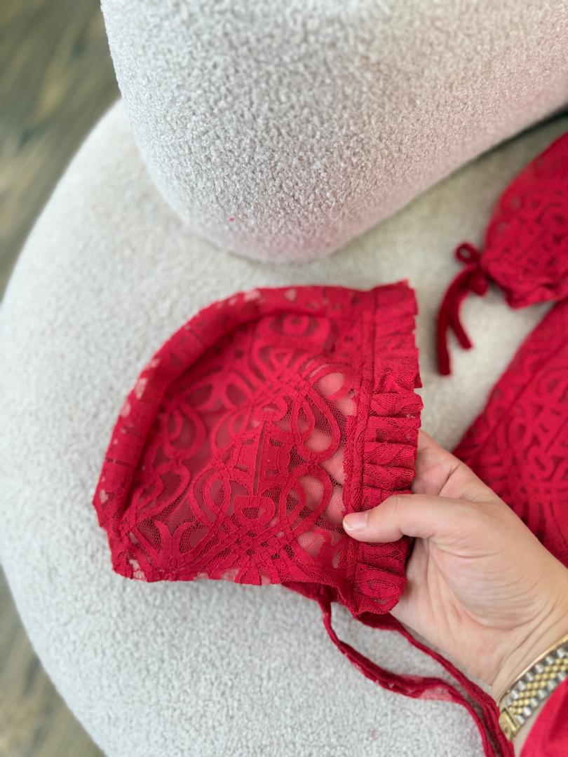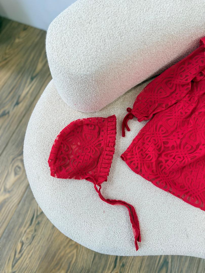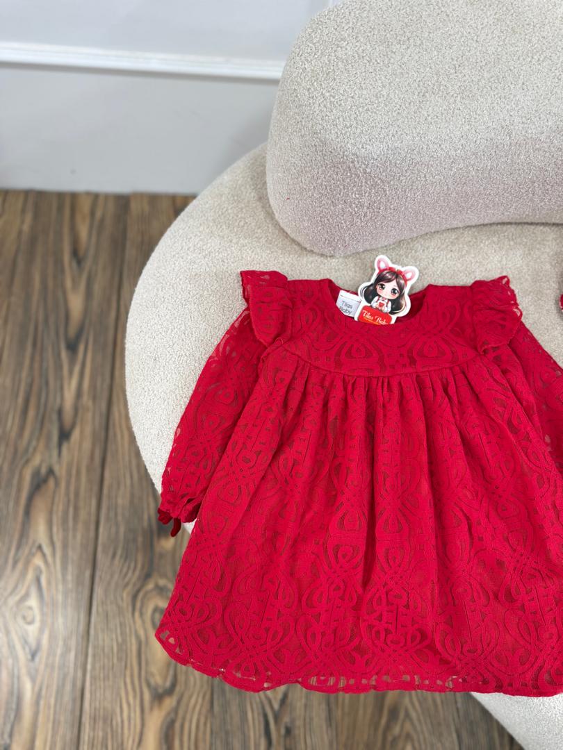 کد ۲۸۴۰ پیراهن دانتل قرمز طرح ونک