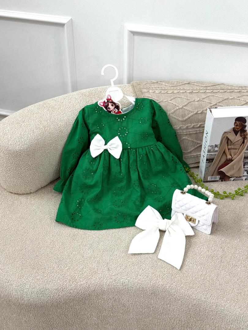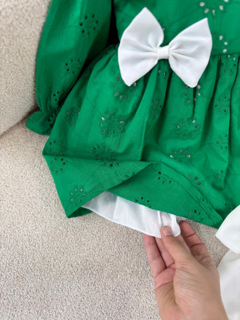 کد ۲۸۴۹ پیراهن سوزندوزی سبز طرح هدیه