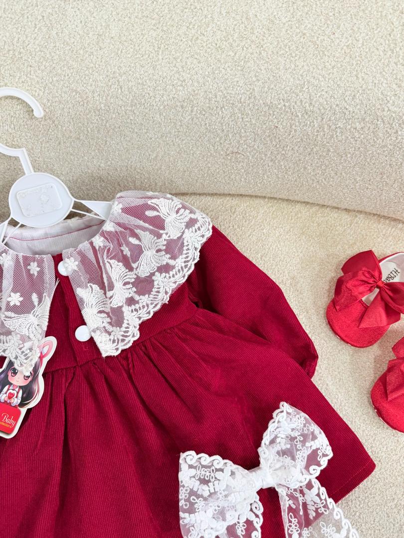 پیراهن کبریتی یقه توری شکوفه پروانه