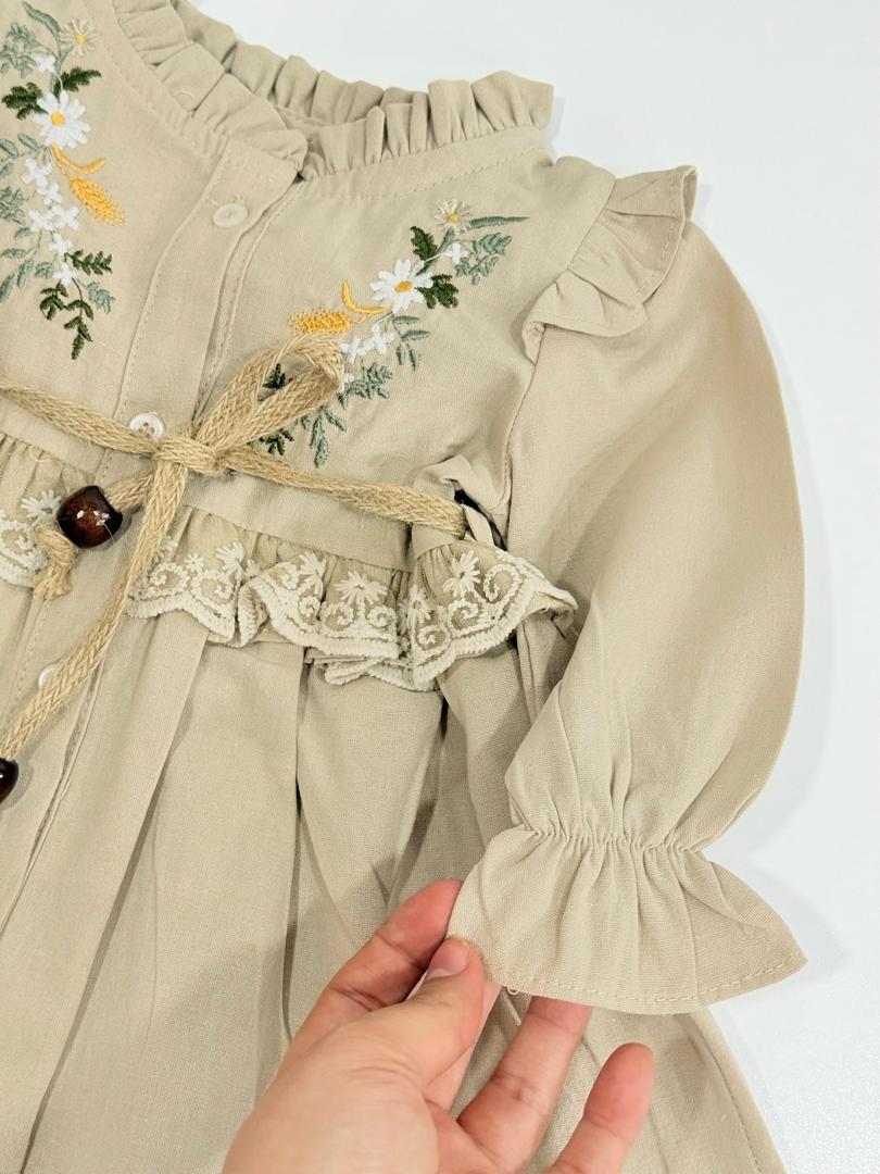پیراهن لینن کمر کنفی