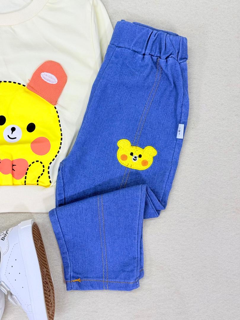 کد ۳۰۴۱ بلوز + شلوار جین وارداتی طرح خرس زرد