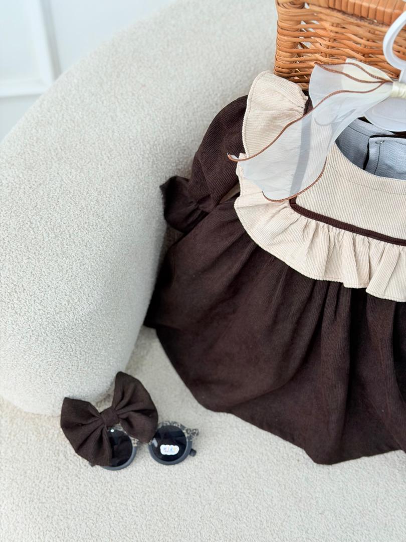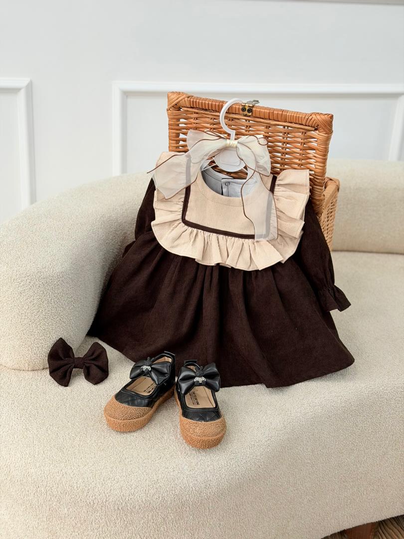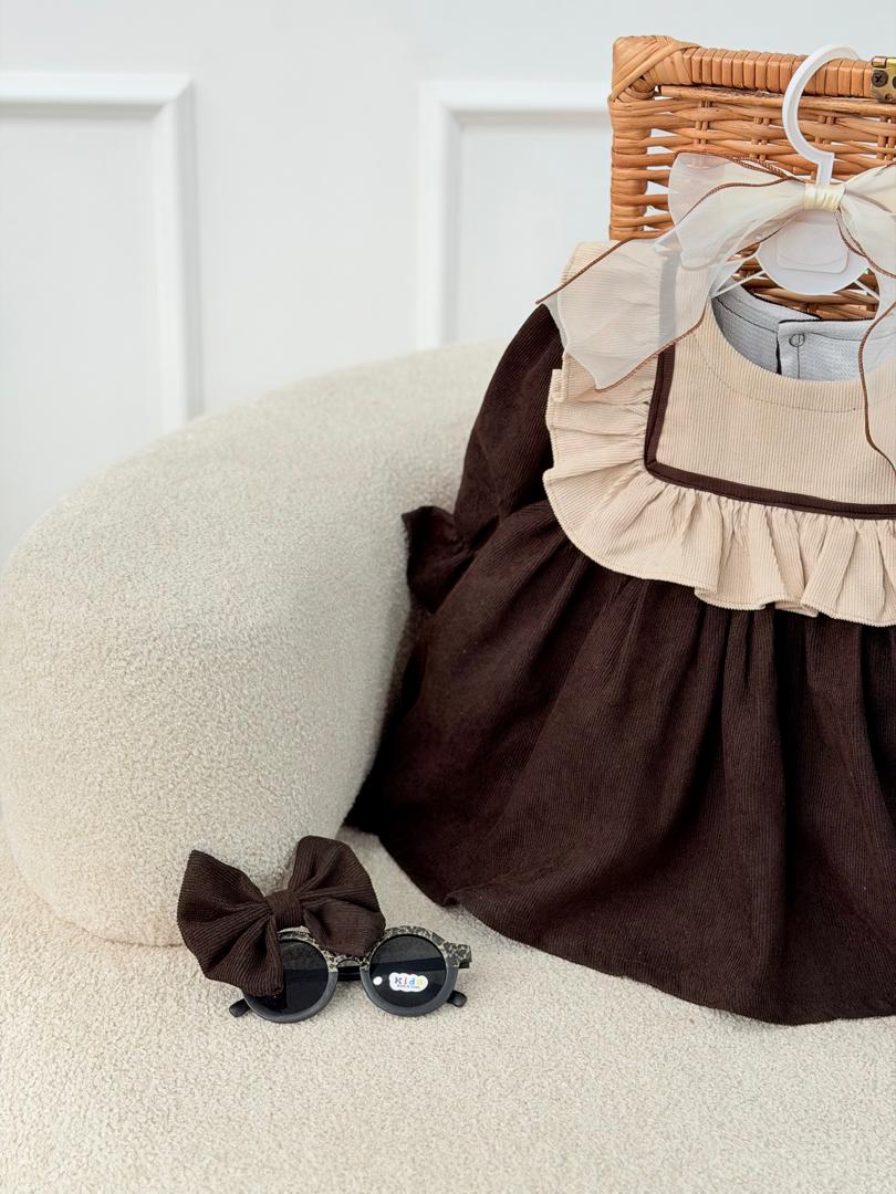 پیراهن کبریتی کرم قهوه ای ژینا