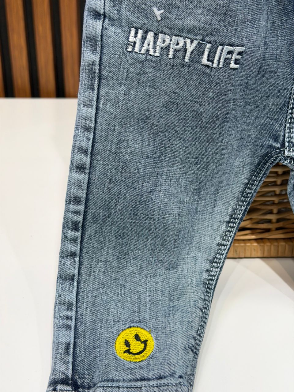 کد ۳۱۷۸ شلوار جین happy life استیکر زرد