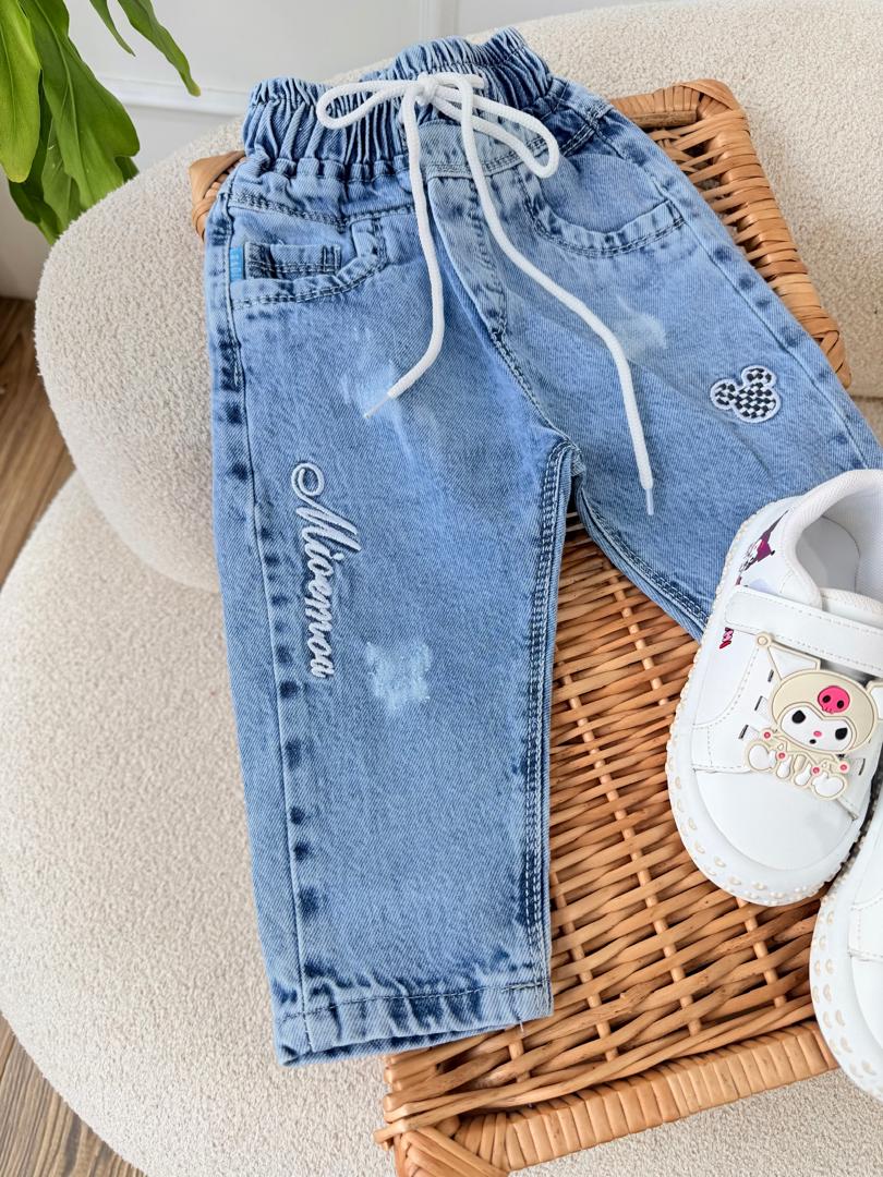 کد ۳۱۸۲ شلوار جین طرح میکی موس شطرنجی