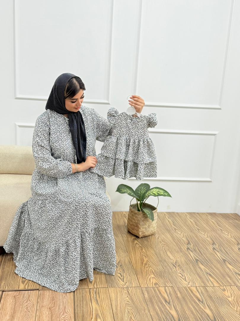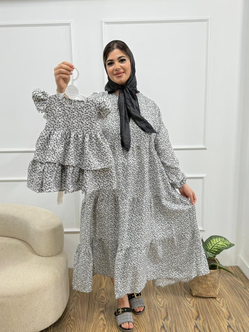 کد 2201 پیراهن گل ریز سفید دخترانه و پیراهن مادر