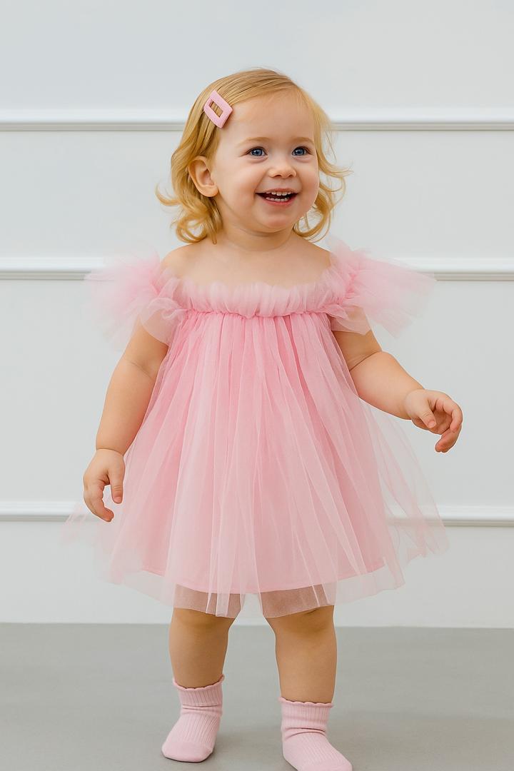 کد 2741 پیراهن تولدی توری صورتی طرح ملینا