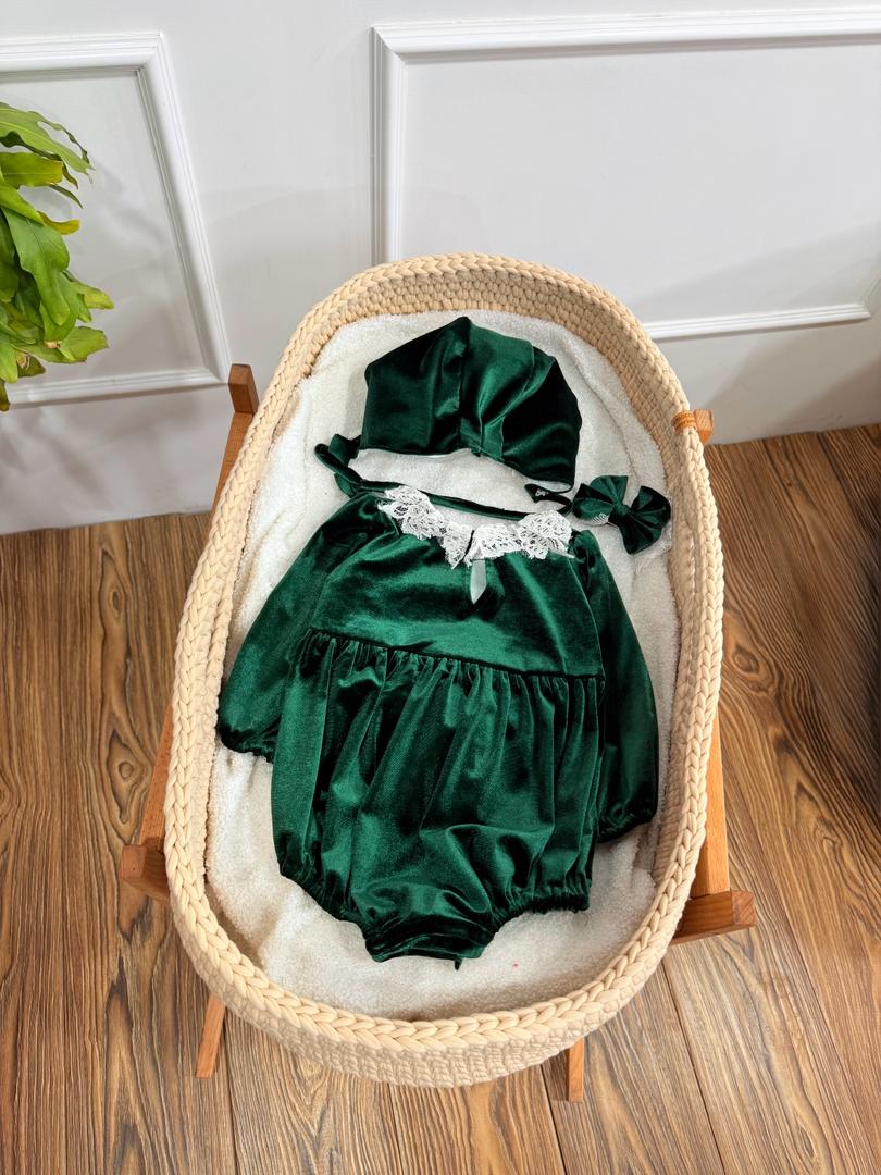 بادی مخمل سبز یقه