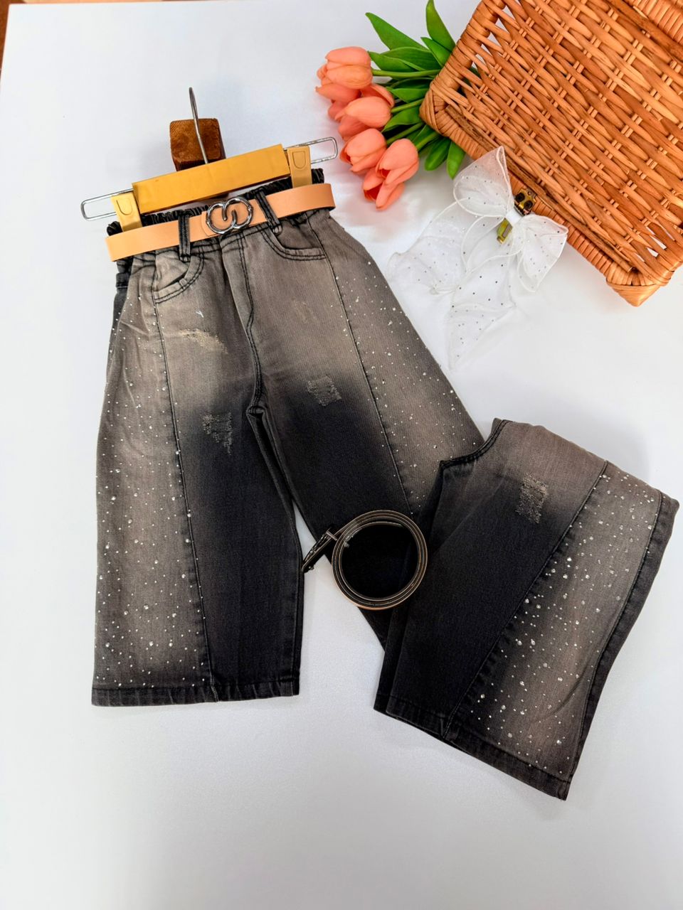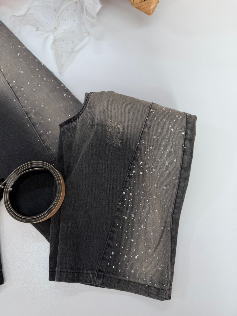 کد 3031 شلوار جین نگین دار به همراه کمربند