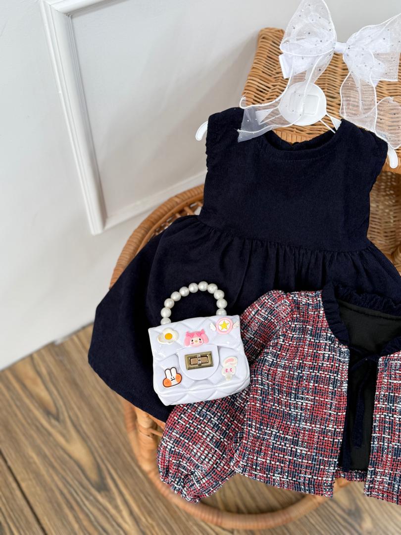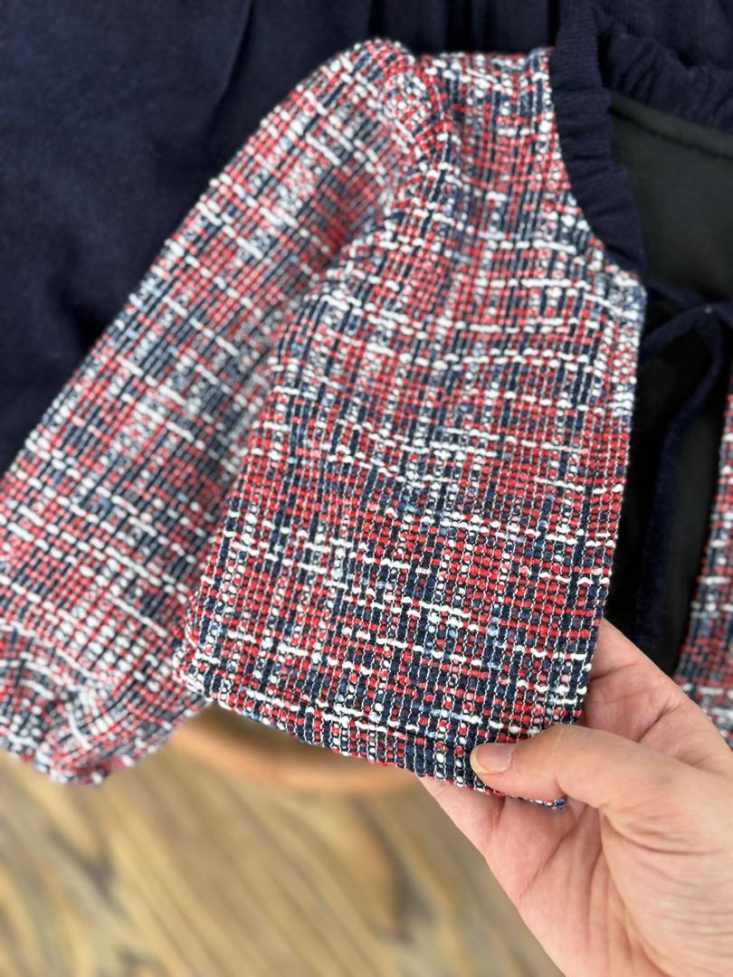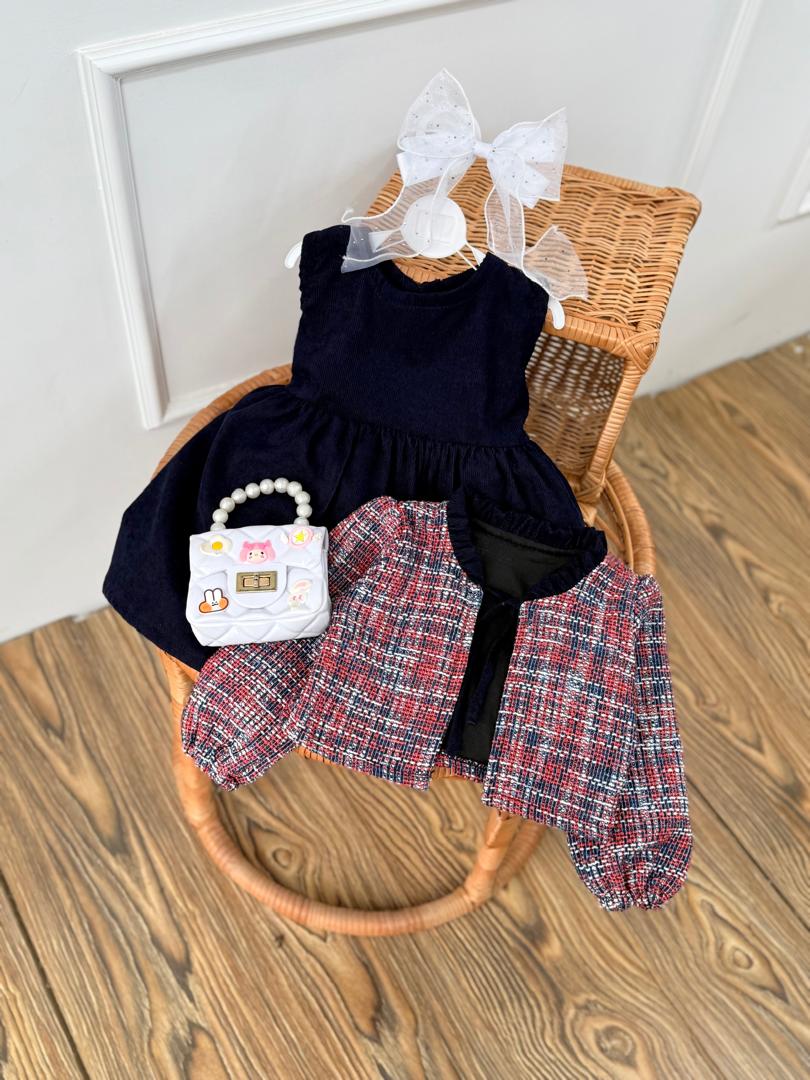 ست دوتیکه کت چهارخونه و سارافن کبریتی